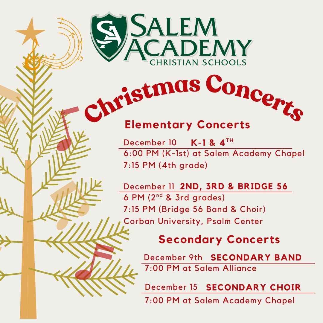 Salem Academy offers its students a wide variety of opportunities to express their artistic abilities. This includes band, choir, theatre, photography, painting, and more. So many ways for students to reflect our creative God.